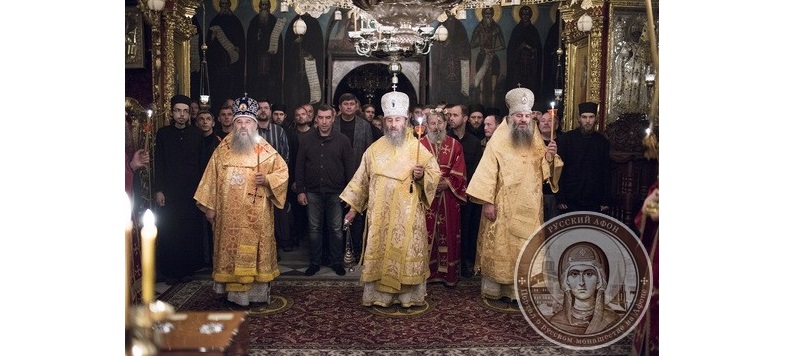 Як повідомлялось раніше, 4 листопада Блаженніший Митрополит Онуфрій прибув до Руського на Афоні Свято-Пантелеімонівського монастиря, де Його Блаженство урочисто зустріла братія обителі. 5 листопада Предстоятель Української Православної Церкви на Святій Горі молитовно відзначив день свого народження.